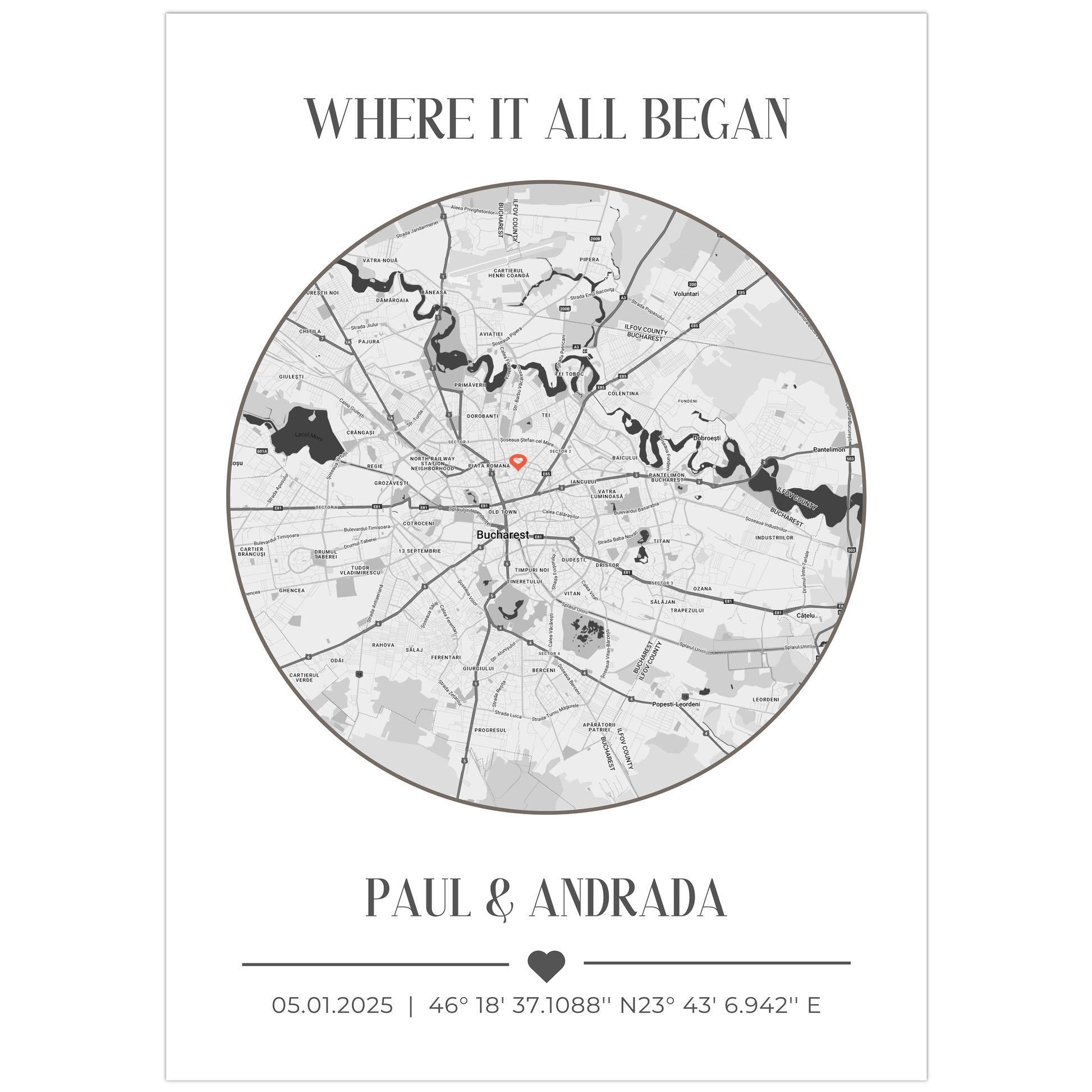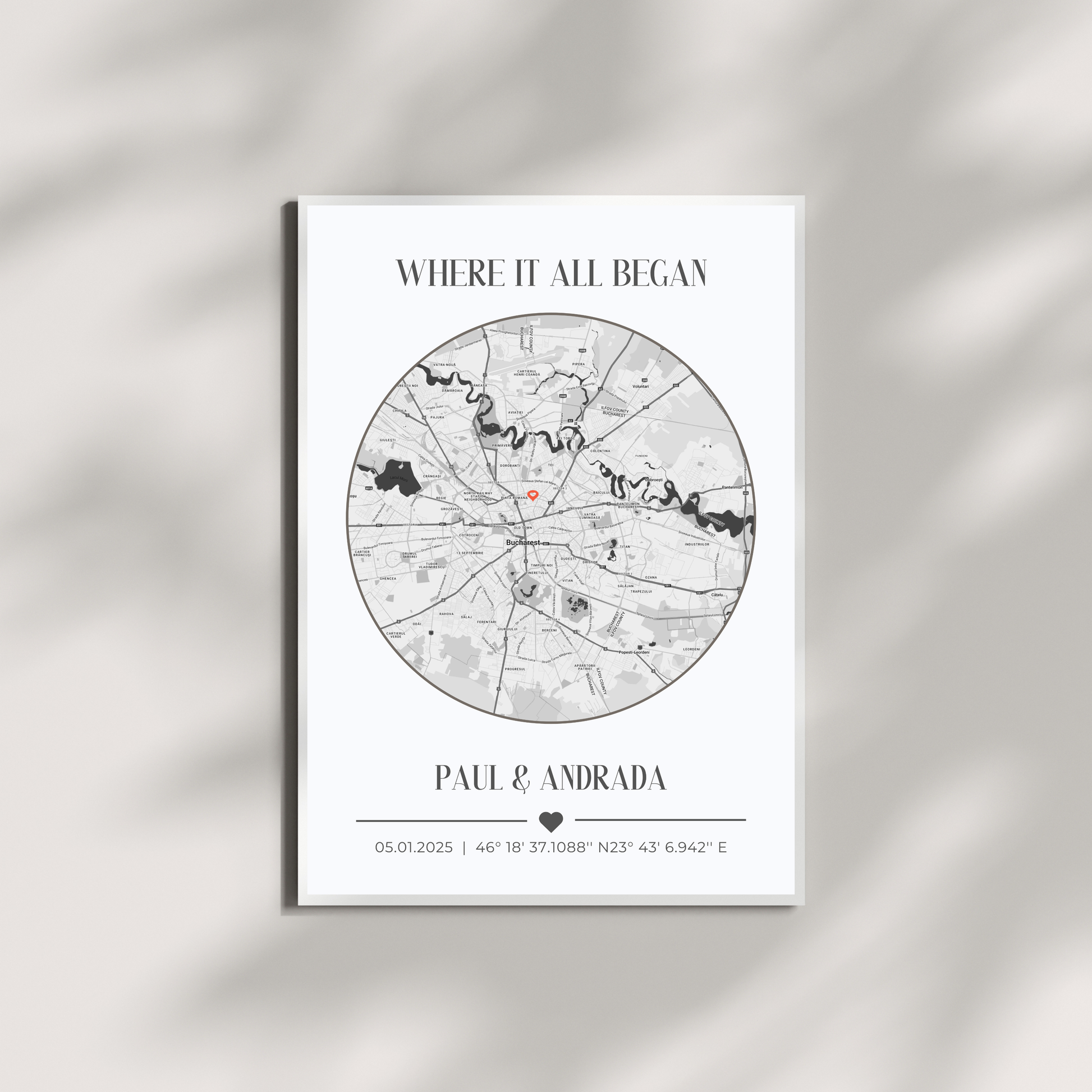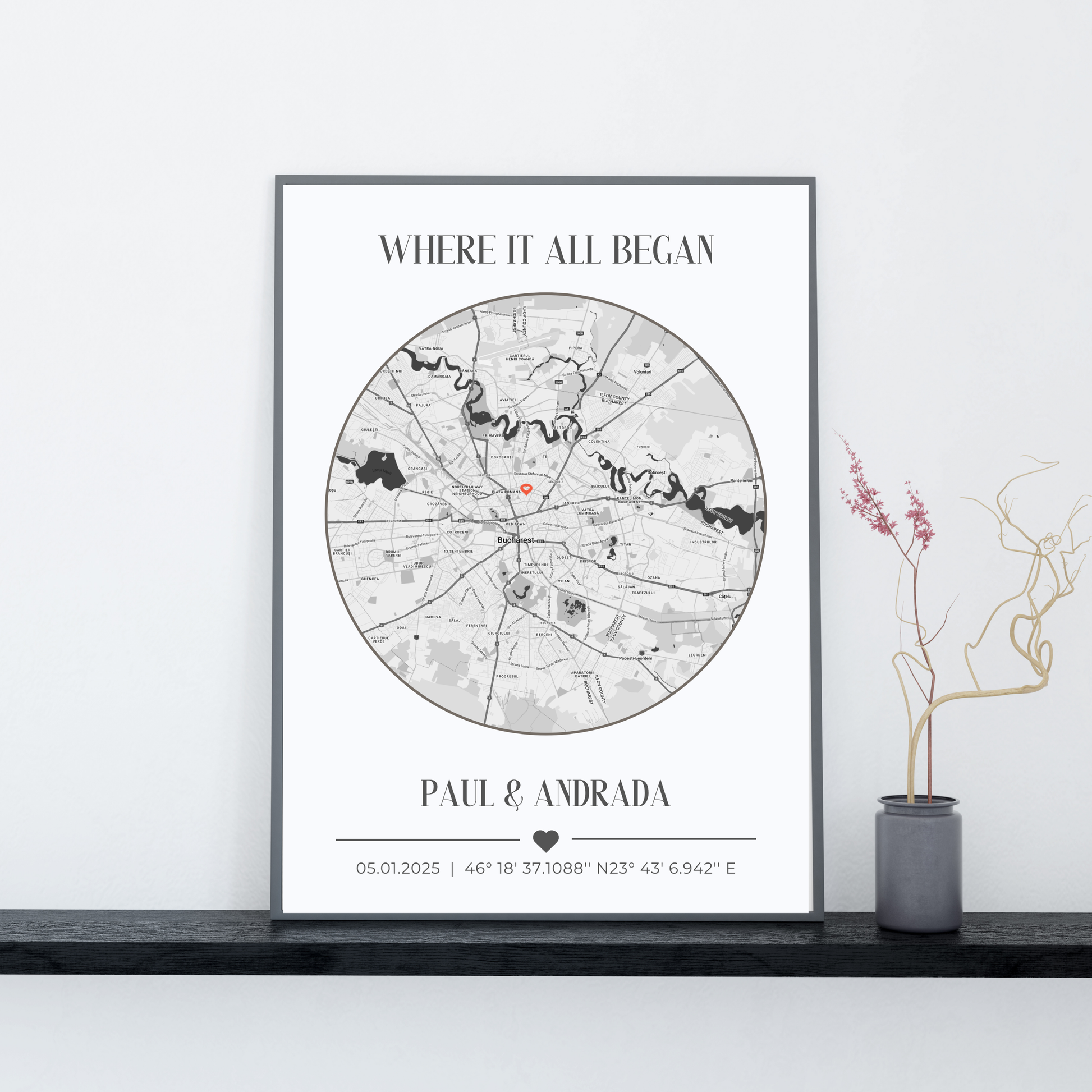 Creati-va propriul tablou personalizat Harta Unde Ne-am Cunoscut. Alege momentul cel mai important din viata ta si lasa-ne sa il transformam intr-o amintire care va dura o vesnicie.